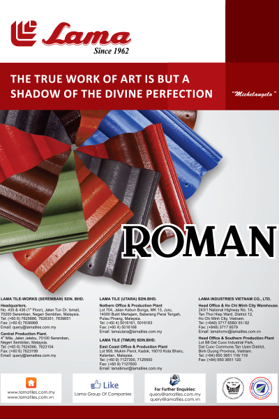 “Lama” has been synonymous with high quality workmanship since the 1960s. Lama Tiles, formed in 1962 under the name of “Butterworth Brickworks” to produce clay bricks and “Lama 62” profiled concrete roofing tiles as well as its related accessories primarily for the building and construction industry.